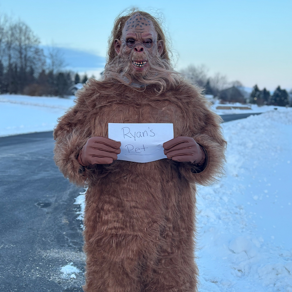 This is my pet Sasquatch. We found him years ago. We keep him outside a lot, but bring him in once a week to brush his hair. We call him Harry. We love him.