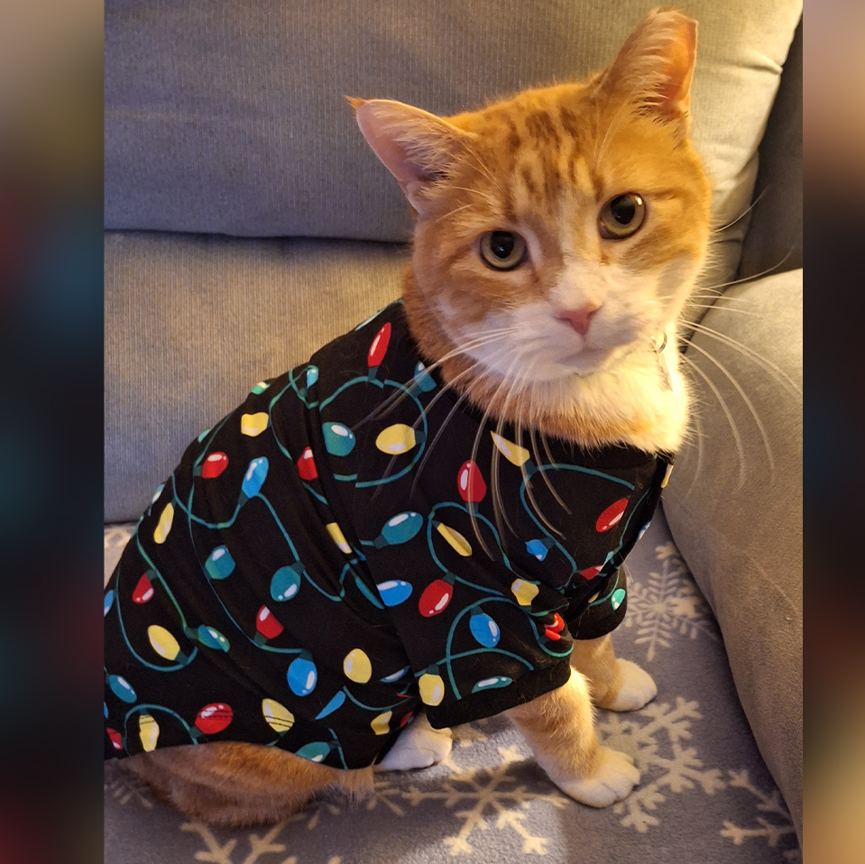 Rusty is new to our family. Adopted him on 03.23.2025, and of course, I just had to do the 1st Christmas outfit. My brother now calls me the crazy cat lady. He completes our family unit