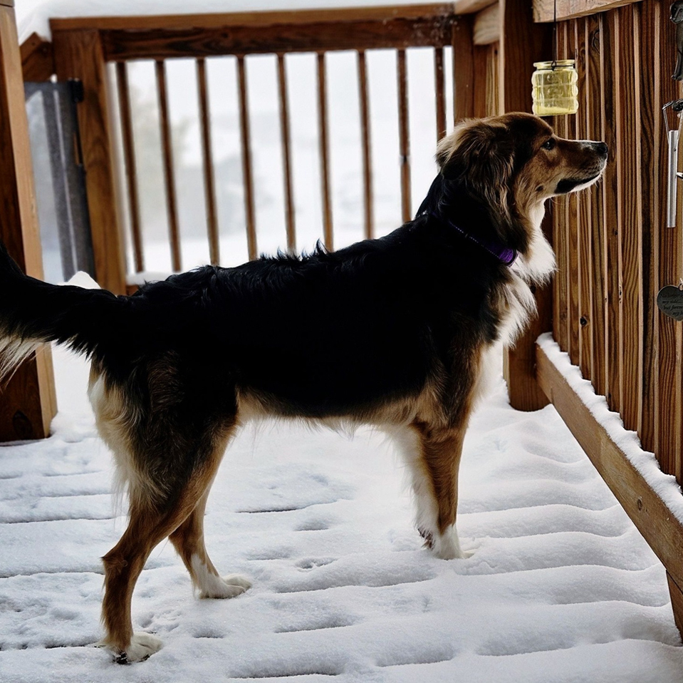 Sully the snow dog. Here she is, on deck snow patrol. Nobody gets past her- without treats.