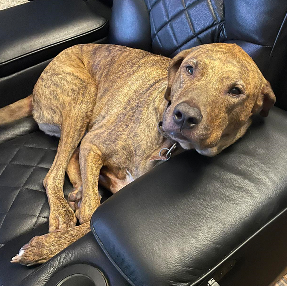 Here’s Harley. She’s a fan of lounge chairs and any other chair you plan on sitting in.