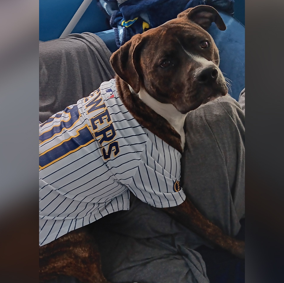 Oreo is a daddy’s girl and loves watching the Milwaukee Baseball Team on TV and went to a game
