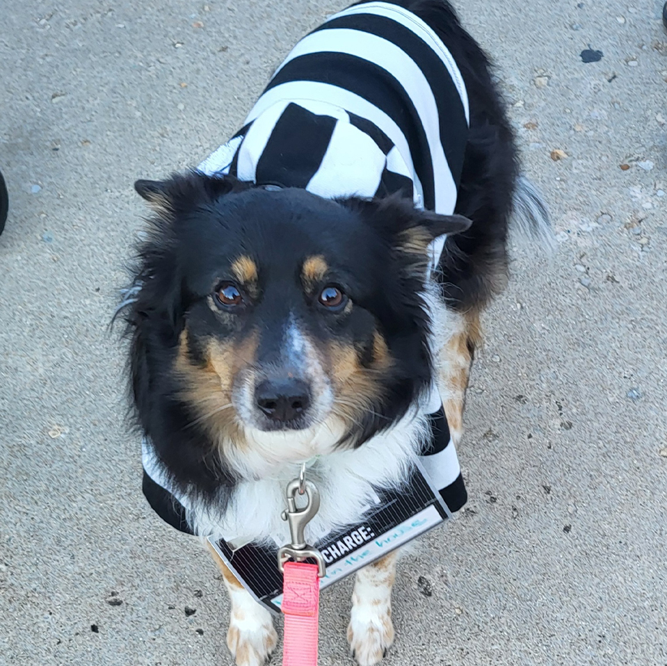 Sasha is a sheltie boarder collie mix who is ten years old but thinks she is three. She loves to play Frisbee and play wih the grand babies. She hates thunderstorms and loves to bark a LOT!