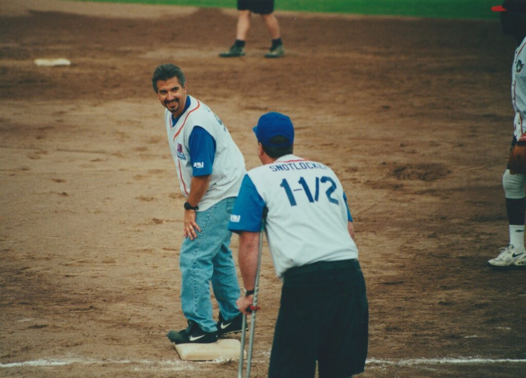Dan Jansen softball game with Mort coaching first