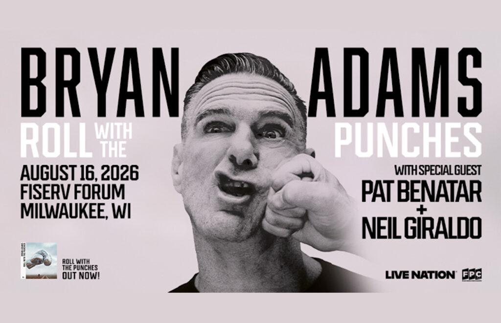 Bryan Adams: Roll with the Punches with guest Pat Benatar & Neil Giraldo with Pat Benetar and Neil Giraldo on Sunday, August 16 at Fiserv Forum