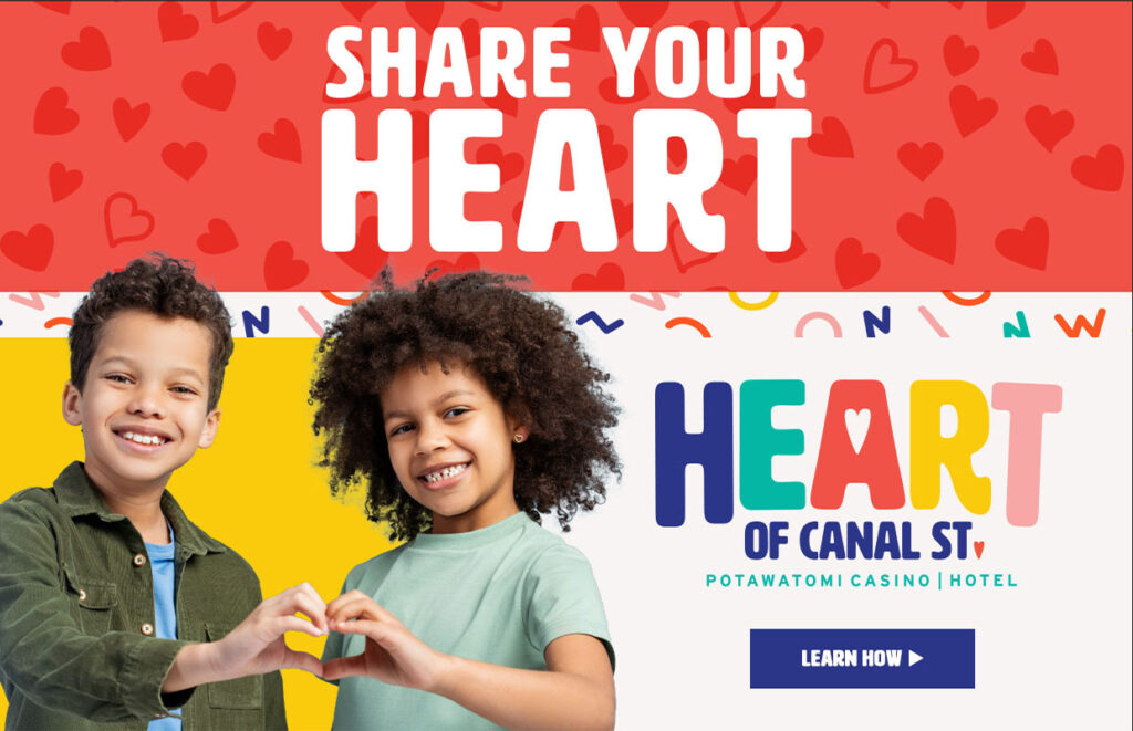Potawatomi Casino Hotel’s signature community program celebrates yet another year of giving to children in southeastern Wisconsin. Since its beginnings, the Heart of Canal Street program has contributed more than $21 million to hundreds of local children’s charities. This year, 30 deserving local children’s charities will each received an equal portion of more than $500,000 in total!