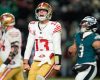 Brock Purdy threw a go-ahead 4-yard touchdown pass to Christian McCaffrey late in the fourth quarter, San Francisco used a trick play on a TD toss from Jennings to McCaffrey, and the 49ers eliminated the defending Super Bowl champion Philadelphia Eagles with a 23-19 wild-card victory Sunday.